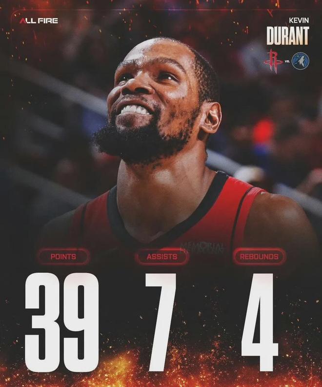 KD同样已经37岁,可在休斯顿照样逃脱不了被当驴使的命运。