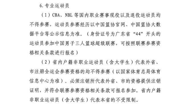今年广东省联赛将会有重大改革,从流出的部分规程内容来看,关于“参赛资格”一项变化最大,其中“专业运动员”方面引人注意,原文如下: