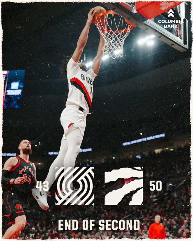 杨瀚森替补3篮板开拓者不敌猛龙结束4连胜,霍勒迪21分7助攻