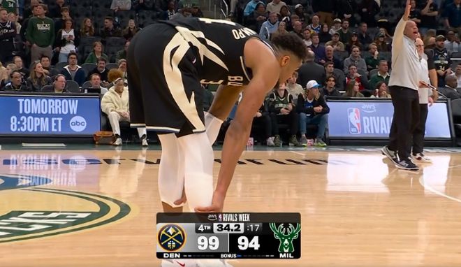 字母哥22+13+7伤退!雄鹿无缘23分逆转残阵掘金 近8战6败