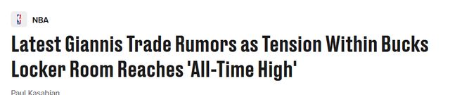 字母哥的沮丧情绪已经到了顶点。他在为球队输球而懊恼,也在为当前的处境而心烦。我可以这么说,过去几周,我断断续续采访了十余位消息人士,雄鹿队内、更衣室内的紧张感确实已升至历史峰值,而且能明显看出球队内部正出现分裂的苗头。原因很简单,当一位像字母哥这样级别的球星心思活络,或是对自己在球队的未来感到迷茫,并且与管理层就未来走向展开激烈磋商时,整支球队必然会被巨大的不确定性所笼罩。”