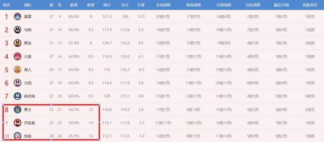 我们一起看下西部目前的局势,雷霆、马刺和掘金处于第一梯队,也是位置比较稳定的。火箭、湖人、太阳和森林狼处于第二梯队,这4支球队在争夺最后3个锁定的季后赛席位。勇士、开拓者和快船处于第三梯队,这3支球队都在抢第8名的位置。勇士领先快船4个胜场,开拓者领先快船2个胜场。由于勇士队损失了巴特勒,在接下来的竞争力会削弱。开拓者也是伤病不断,同时又是年轻球队,球员们的状态和心态也都不稳定。