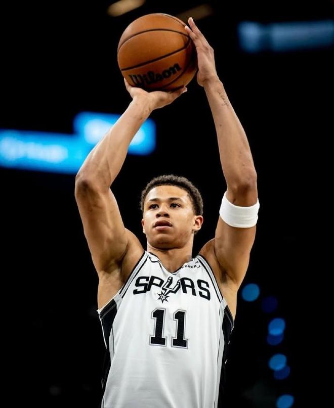 而且,他的防守潜力,早在NCAA时期,就已经展露无遗,能够从1号位防守到4号位,横移速度不逊色于后卫,防守的预判意识也是极佳,这也是得到了所有球探的认可。不仅如此,他在大学时期,三分命中率保持在了37.1%,所以攻防两端,他的能力和潜力都是有的,完全符合小球时代的要求,有成为顶级3D侧翼的潜质,这是马刺队选中他的重要原因。