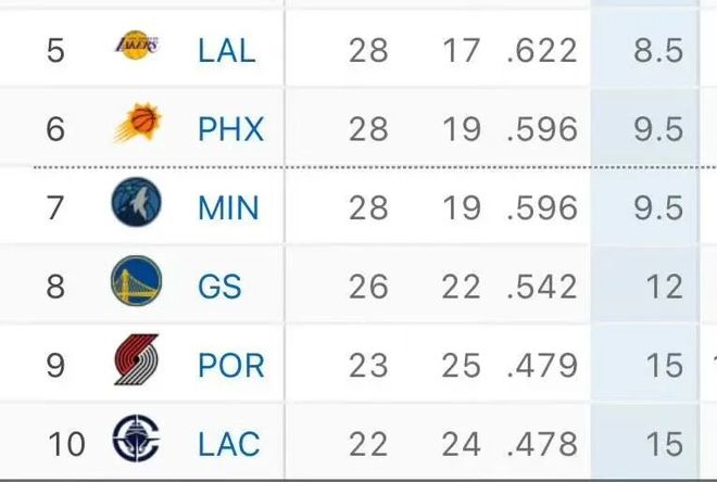 距离西部第六还有5.5个胜场,并不遥远