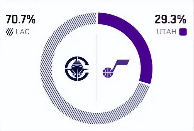 这是两队本赛季的第三次交锋,前两次交手双方各胜一场,而最近5次交手,快船拿下4胜1负,优势明显。赛前,美媒ESPN对本场比赛进行了胜率预测,爵士胜率仅有29.3%,快船队胜率则高达70.7% 。
