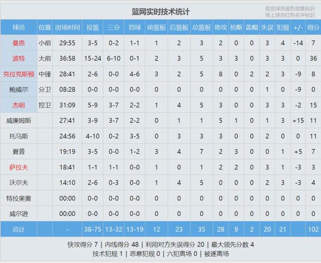 篮网这边,小迈克尔-波特爆发:24投15中,三分10中6,空砍36分5篮板3助攻3抢断。这是小波特本赛季第12次单场30+!最近小波特跟勇士传出交易流言,篮网希望用小波特换回多个首轮签,勇士的报价无法满足篮网的要求。