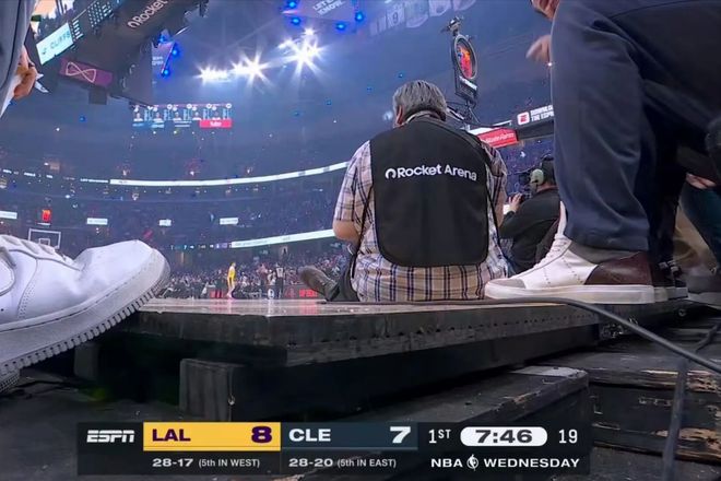 所以今天,前往克利夫兰挑战骑士队的比赛,对于湖人队来说,是冲击三连胜的机会。但是在外界看来,这一次的对决绝不是一场简单的常规赛。这或许是詹姆斯最后一次造访克利夫兰,又或许是詹姆斯最后一次以‘客场球员’的身份造访。重回克利夫兰,全场的焦点自然是詹姆斯,而他开局势头也不错,不断长传连线助攻队友。东契奇也很会来事,不停给詹姆斯做球。所以比赛开局阶段,湖人队能和骑士队紧咬比分。不过,这一片场地,差一点就酿成大祸。东契奇投篮结束之后,单脚挑着倒退,没想到踩到了地板和场边的缝隙中,直接崴脚。