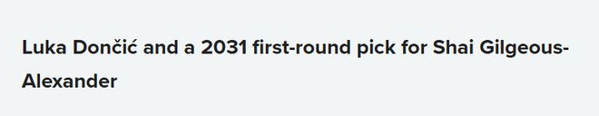 雷霆得到:东契奇、2031年首轮签