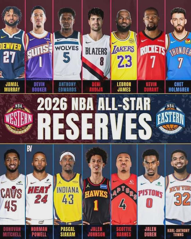 西部首发东契奇、约基奇、库里、文班亚马和亚历山大;替补爱德华兹、切特、穆雷、布克、阿夫迪亚、杜兰特和詹姆斯。