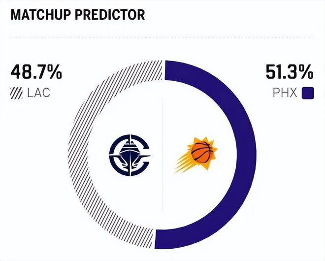 这是本赛季两队的第四次交锋,前三次交手,太阳2胜1负稍占上风。赛前,美媒ESPN对本场比赛进行了胜率预测,快船队胜率仅有48.7% ,太阳队胜率则为51.3% ,略占优势。