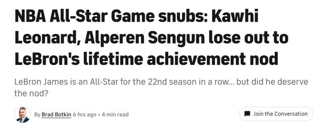不少人认为,莱昂纳德的落选实在离谱。他打出了一个现象级的赛季,如果两人表现差距不大,把名额给詹姆斯尚可理解,但如今的情况根本不是势均力敌。在这一点上,我完全站在莱昂纳德这一边。