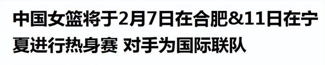 2月3日,中国篮球协会官网权威发布中国女篮热身赛参赛球员名单,信息来源清晰、渠道正规,绝非坊间猜测或非官方渠道流出。