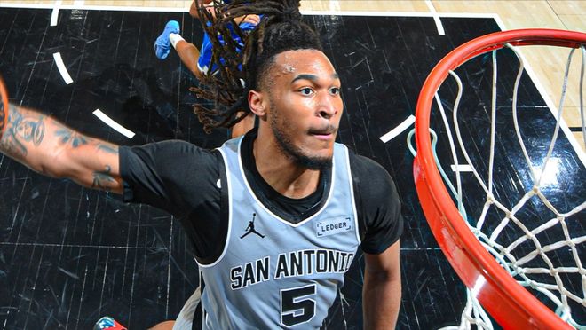 哈珀8中5,三分1中1,延续高级货比赛特点,高效拿下11分4板5助1抢断1盖帽全能表现,看着这4大新星悉数爆发,不得不感叹马刺队出色的选人眼光与培养体系,圣城重返争冠行列已指日可待。