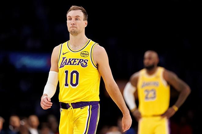本场比赛中,在交易截止日前刚刚通过交易从亚特兰大老鹰加盟湖人的外线投手卢克-肯纳德(Luke Kennard)完成了自己在湖人的首秀,而他在首秀中的表现也是相当不错的。肯纳德全场出场26分04秒,投篮7中4,三分线外4中2,得到了10分2篮板2助攻1抢断的数据,还有2次失误和2次犯规,正负值为+4。肯纳德在进攻端也是作用全面,他展现出了全面的得分能力,他也是能够通过各种方式给对手制造威胁的。肯纳德具备一定的突破能力,他在外线投篮方面的稳定性也是依然非常突出,而且他也具备一定的支配球能力,他在进攻端的功能看起来非常全面。肯纳德在防守端的能力比较一般,但是至少他在进攻端实实在在为球队提供了不少的支持,成为了球队第二阵容中的关键人物。
