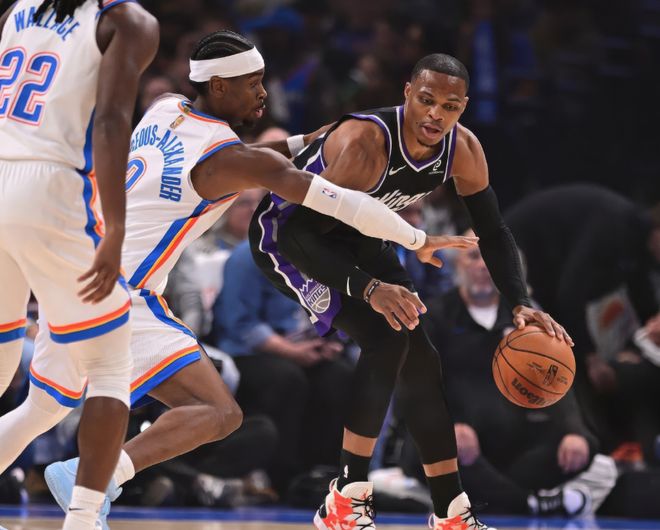 特别是和骑士一战,由于是哈登骑士首秀,我们终于能好好观察国王这支球队,一套残阵和骑士打得有来有回,甚至最后2分钟还反超了骑士,但威少总会出手,两次强行超远三分打铁,一次运球失误直接出底线,当德罗赞三分球维持一丝悬念时,又是威少的三分打铁,哈登四罚全中锁定胜局。包括之前一场打快船,国王早早拉开10分分差,眼看快船艰难追分,总有一些差距,国王主帅克里斯蒂也着急,第四节直接放弃让主力上场,送快船一场胜利。这下好了,原来国王总能找到输球方式:要么威少在场自爆,要么弃用主力。