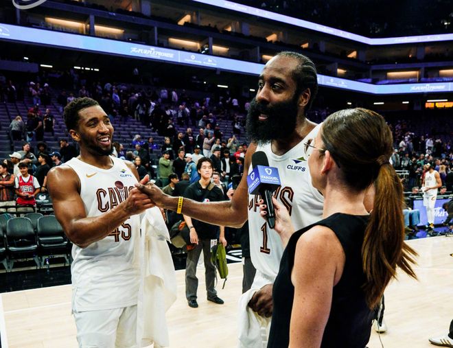 首先,骑士在詹姆斯离开后,经过三年的“摆烂沉淀”,搭建了一套很有竞争力的阵容。这期间他们抛弃了两个小后卫:塞克斯顿和加兰,而引进米切尔,基本把未来首轮签透支差不多了。而在过去几个赛季,骑士拿到东部前四问题不大,上赛季长时间霸占东部第一。但正如我们分析的那样,加兰+米切尔两个小后卫,季后赛确实不太行,引入哈登不仅彻底释放了米切尔的持球组织压力,哈登的持球硬解比赛的能力,丝毫不逊于米切尔。当然,这两者的本质角色不会改变,米切尔和小卡一样,主要负责得分,哈登负责带动其他人。
