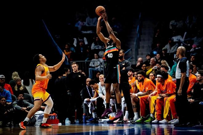第二节果然风云突变,马刺手感骤降,黄蜂则火力全开,三球,米勒和塞克斯顿带队打出一波35-17的单节高潮。米勒单节狂砍16分,塞克斯顿从替补席杀出,连续命中三分,两人合力将半场比分拉开至14分领先。黄蜂的替补火力与首发无缝衔接,让马刺防线措手不及。下半场马刺主帅果断调整,针对性掐死米勒和三球。榜眼哈珀突然爆发,单核带队追分,一度将分差缩小至10分。进入末节,卡斯尔和巴恩斯也加入进攻潮,分差最小时仅剩2分,比赛悬念重燃。但关键时刻,马刺外线连续三次出手不中,黄蜂则稳扎稳打,通过罚球和关键防守锁住胜局。