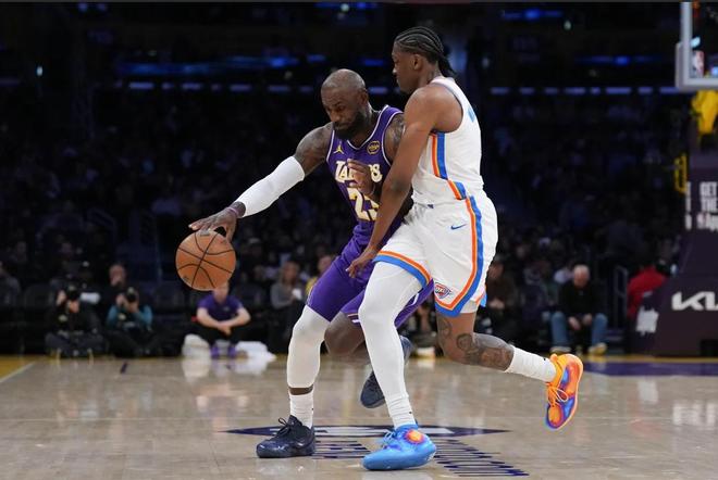 詹姆斯22+6+10尽力了,湖人不敌雷霆!里夫斯16分5失误,卡鲁索惊艳!