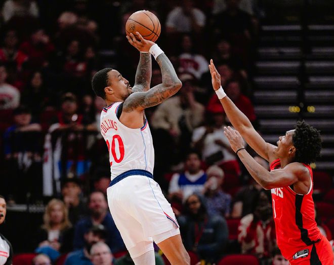后半段德里克琼斯和谢泼德又在外线对飙,马瑟琳轰三分追平后,小贾带队打出小高潮,第一节火箭29-22领先快船。进入第二节,谢泼德续上三分,申京自投自抢暴扣,大洛和马瑟琳勉强维持局面,谢泼德内外开花又将快船打停!危急时刻邓恩三分球止血,谢泼德喂饼杜兰特空切暴扣,伦纳德继续单打,伊森和杜兰特下三分雨。节末伊森捡漏扣篮,杜兰特高难度底角跳投,火箭最多领先15分。琼斯轰三分,马瑟琳造杀伤,快船打出小高潮,半场快船追到46-56。进入下半场,大洛佩兹上三分,伦纳德反击暴扣。