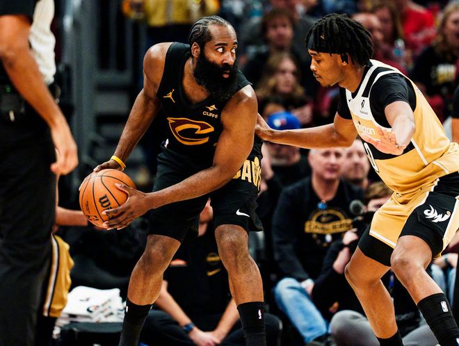 和泰伦卢相比,阿特金森对于哈登的使用方式,真是用心到极致。首先,暂时不让哈登带衔接段替补阵容,很简单,需要慢慢磨合,而且哈登的年龄摆在那里,他带衔接段,需要主攻消耗会更大,就让阿伦绑定哈登,给哈登创造最舒适的进攻环境。其次,这三场比赛,防守端骑士全队选择默契保护哈登这一点,简单来说,甚至都不想让他对位对手的锋线得分点,泰森+梅里尔车轮战消耗,米切尔有些时候扮演领防人,把哈登藏在最后。用米切尔的话说,哈登能把每个人放在合适的位置上,他告诉我们他会想办法融入其中。