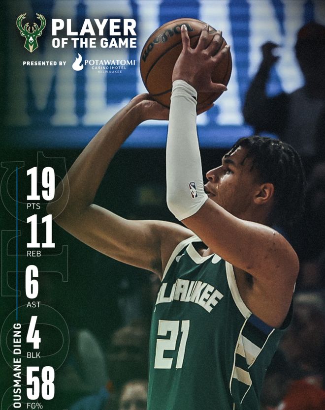 除了奥斯曼-迪昂之外,雄鹿在买断市场捡漏的新援卡姆托马斯也交出不错的表现,13中5拿下12分1板2助。