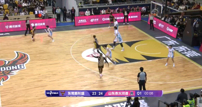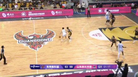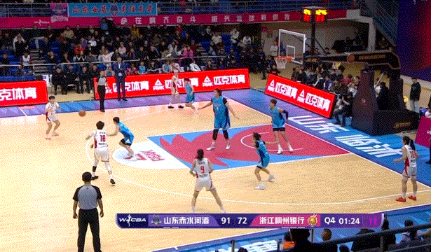 后卫溜底线到转移球给强侧,然后翟若云移动到弧顶的联防空档