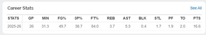 弗莱明斯本赛季场均31.3分钟,拿到16.6分5.3助攻3.7篮板1.7抢断0.4盖帽,命中率49.7%,三分命中率38.7%,这位足尺寸的一号位冲击力、三分投射都很出色,他是一个完美契合NBA节奏的顶级一号位。