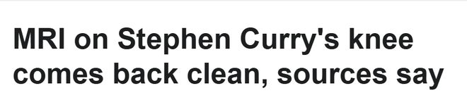 库里最新核磁结果出炉!右膝无结构性损伤 仍疼痛肿胀至少再歇5场