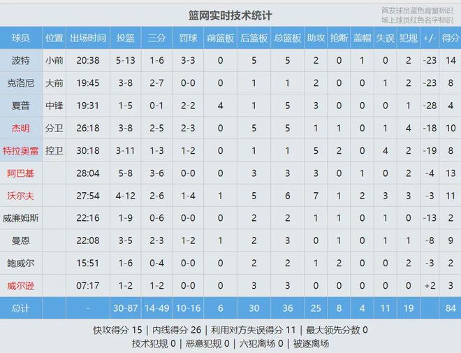 第三节开始,骑士又轰出一波11-0,分差迅速来到30+!第三节后半段,骑士最多领先到43分,比赛彻底进入垃圾时间。篮网这边小波特失去准星,前三节的三分球只有6中1。他本赛季场均25分7.2篮板3.2助攻,三分命中率38.5%。