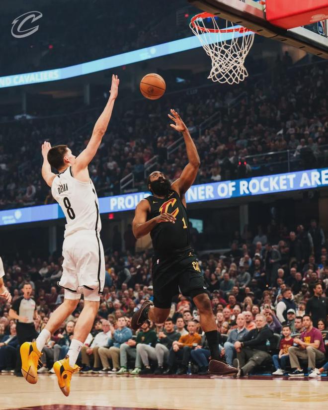 哈登首节送出4记助攻,一次击地妙传阿伦,另一次是抢断快攻助飞米切尔。自哈登加盟之后,骑士百回合轰下126.7分,进攻效率领跑全联盟。除了哈登之外,骑士还有两个新援:施罗德和基恩-埃利斯,骑士的配置已经是东部顶级!