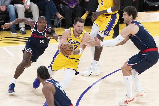 末节初段,快船防守上强度了,尼德豪泽扣篮追平,里夫斯三分止血。但快船这边大洛底角三分命中反超,湖人暂停。回到比赛,斯玛特底角三分命中,小卡顶人三分,斯玛特同样位置又长两分2+0。东契奇抢断以后,反击三分还有,轮到快船暂停。小卡左脚踝酸痛退赛。马瑟林两罚两中以后,大洛又进一个,东契奇三分止血。马瑟林6犯毕业以后,东契奇和斯玛特两个2+1几乎锁定胜局。但小琼斯底角三分和2+0连得5分续命。东契奇再次造犯规罚球杀死比赛。