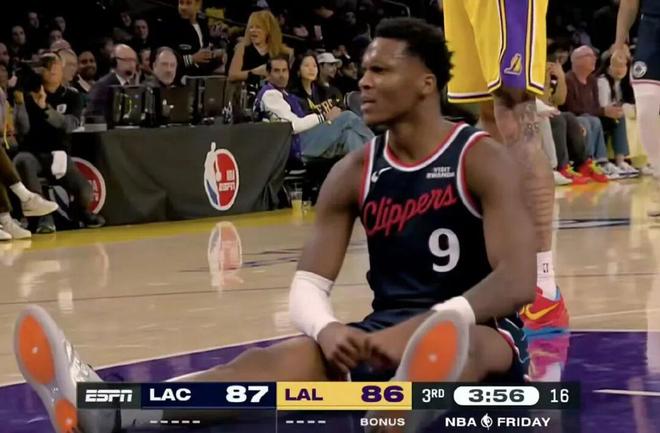 就在中场快结束时,快船的追分出了意外