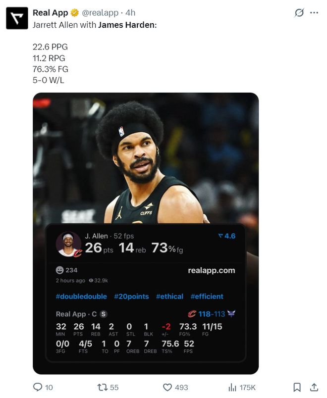 在哈登加盟骑士后,贾莱特-阿伦是最受益的那个,他场均拿到22.6分11.2篮板,真实命中率76.3%。