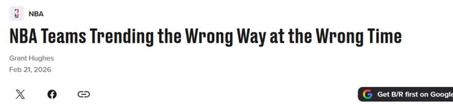 勇士队高居第一!在常规赛进入冲刺阶段之际,美媒《BR》评选出势头不对的5支强队,火箭入选掘金排第二。