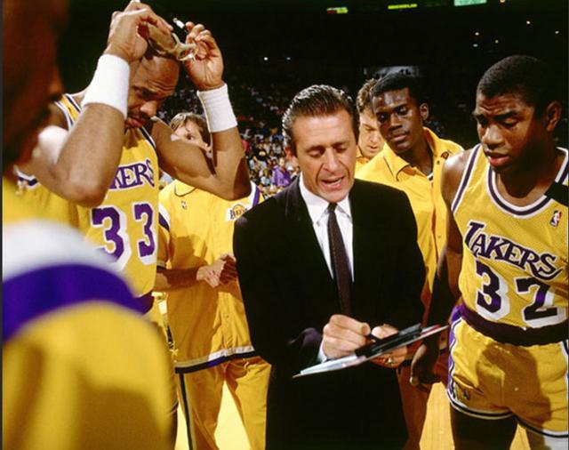 莱利在1989-90赛季率贾巴尔已退役的湖人,取得63胜19负全联盟第一,被授予最佳主帅称号,他终于获得NBA的首肯。莱利打造的Showtime湖人,不仅以行云流水般的进攻折服对手,更是以1-3-1联防让各路对手叫苦不迭。