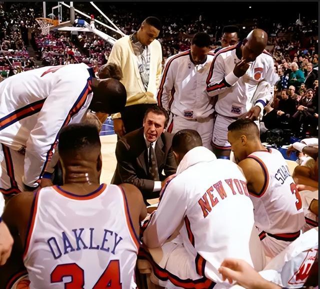 莱利卸任湖人后,转身去了尼克斯。但此时东部已成乔丹的公牛天下。尼克斯常年被公牛压制,好不容易1993-94赛季掀翻了乔丹退役之后的公牛,闯入总决赛,七场大战又负于奥拉朱旺领衔的火箭。隔年,尼克斯又3-4败给步行者。莱利此时因为索要“总经理职权”,与尼克斯高层发生矛盾,故而一怒之下转投新军热火。