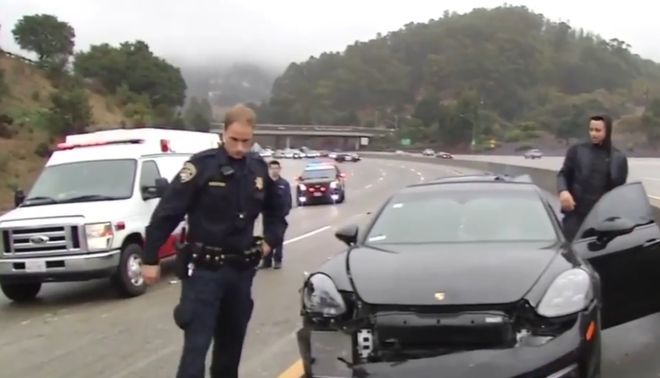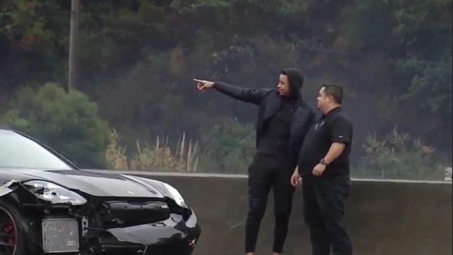 由于当时的天气原因,一辆轿车失去控制后撞到库里的保时捷。