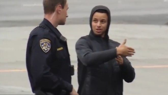 同样是NBA里的球星代表,这是库里在处理车祸时的表现,和蔼大方。