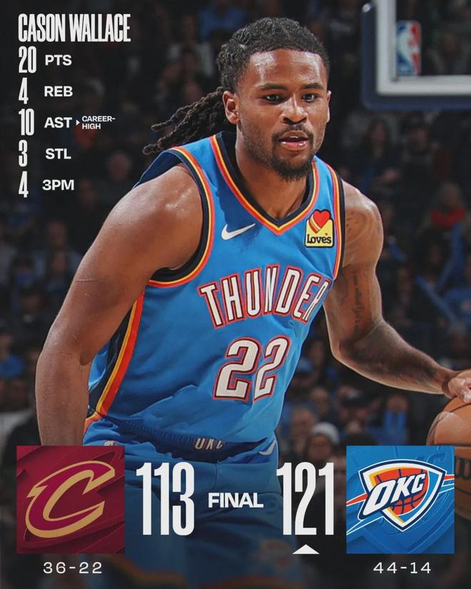 北京时间2月23日,今天早上结束的两场常规赛:骑士客场113-121不敌雷霆,7连胜被终结;勇士主场128-117逆转掘金。先说第一场,亚历山大、杰伦-威廉姆斯和卡鲁索等人休战,雷霆二队出战,但他们三分命中率超过五成!