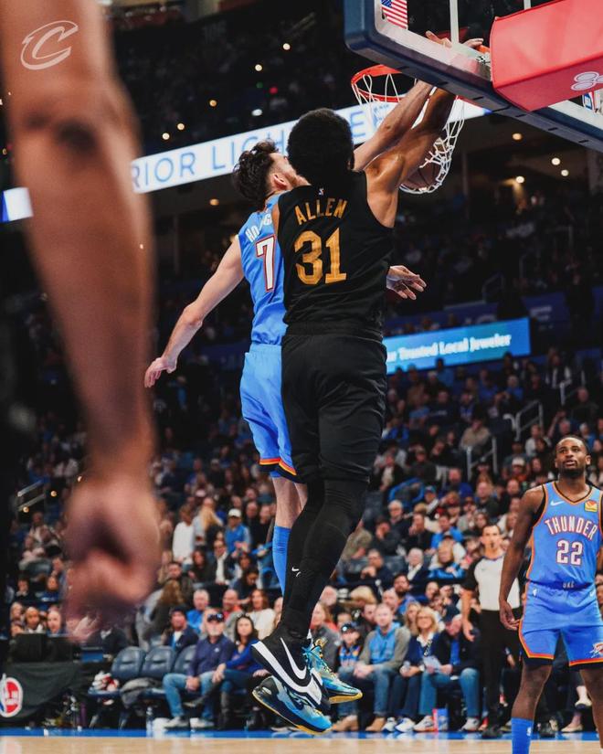 雷霆主帅戴格诺特赛后透露,教练组对于派谁防守哈登和米切尔有分歧,最后用投票(6-5)决定派多尔特防守米切尔,卡森-华莱士防守哈登。骑士匹配不上雷霆的防守强度,卡森-华莱士和以赛亚-乔合砍42分,联手投进10记三分。