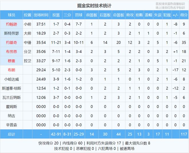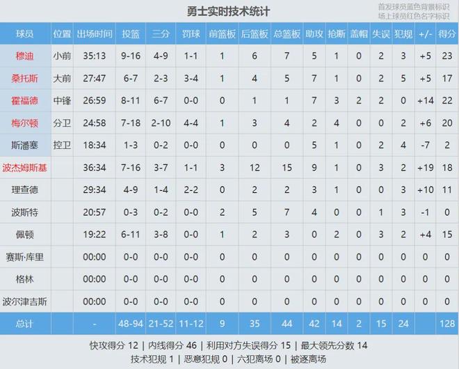 最后来看看掘金和勇士的比赛数据,说说你的心情: