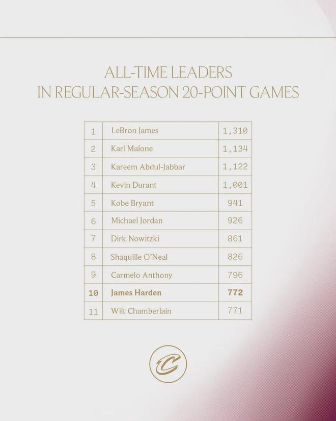 雷霆从一开场就拿出了高强度防守,骑士首节出现10次失误。全场比赛,骑士17次失误送给雷霆31分。哈登14投8中,三分7中3,罚球2中1,拿到20分5板9助1断1帽5失误。哈登生涯第772场20+,超过张伯伦排名NBA历史第十。