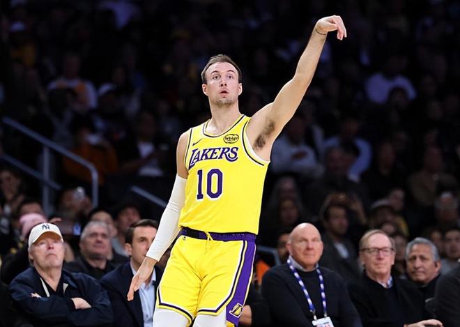 本场比赛中,湖人虽然遭遇了一场惨败,但是球队的替补后场新援卢克-肯纳德(Luke Kennard)的表现其实还是不错的。肯纳德全场出场21分43秒,投篮4中3,三分线外2中1,罚球2中2,得到了9分3篮板1抢断的数据,还有1次失误和2次犯规,正负值为-9。肯纳德在本场比赛中的状态其实相当不错,他的进攻效率相当出色,他也是抓住了有限的机会得到了不少分数,展现出了全面的得分能力。至于防守端,这本身也不是肯纳德的强项,但是他其实也没有出现什么太大的问题。只是问题就在于,在球队绝大多数球员进攻效率不佳的情况下,肯纳德都无法得到更多的球权支持,他的能力当然也没有办法充分发挥出来,他也没有办法在这种情况下为球队提供更多的支持。
