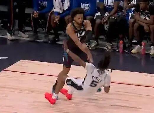 坎宁安卡位时一把推翻卡塞尔,引发冲突