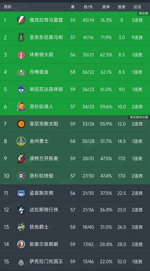 北京时间2月25日,随着湖人失绝杀,109-110憾负魔术,森林狼124-121险胜开拓者,今天的NBA常规赛结束了所有比赛,我们看看西部的最新排名!