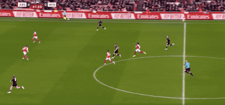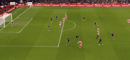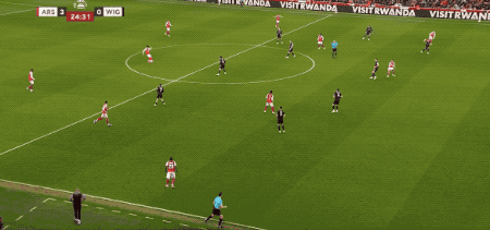 30分钟过后,阿森纳逐渐放松,维冈竞技也不再龟缩在本方半场,开始发力。