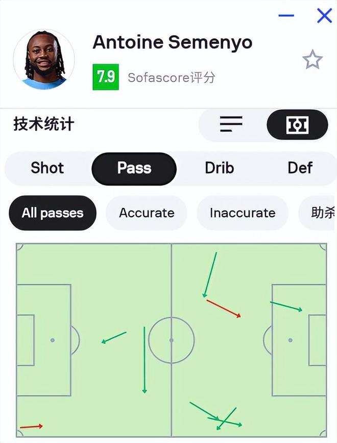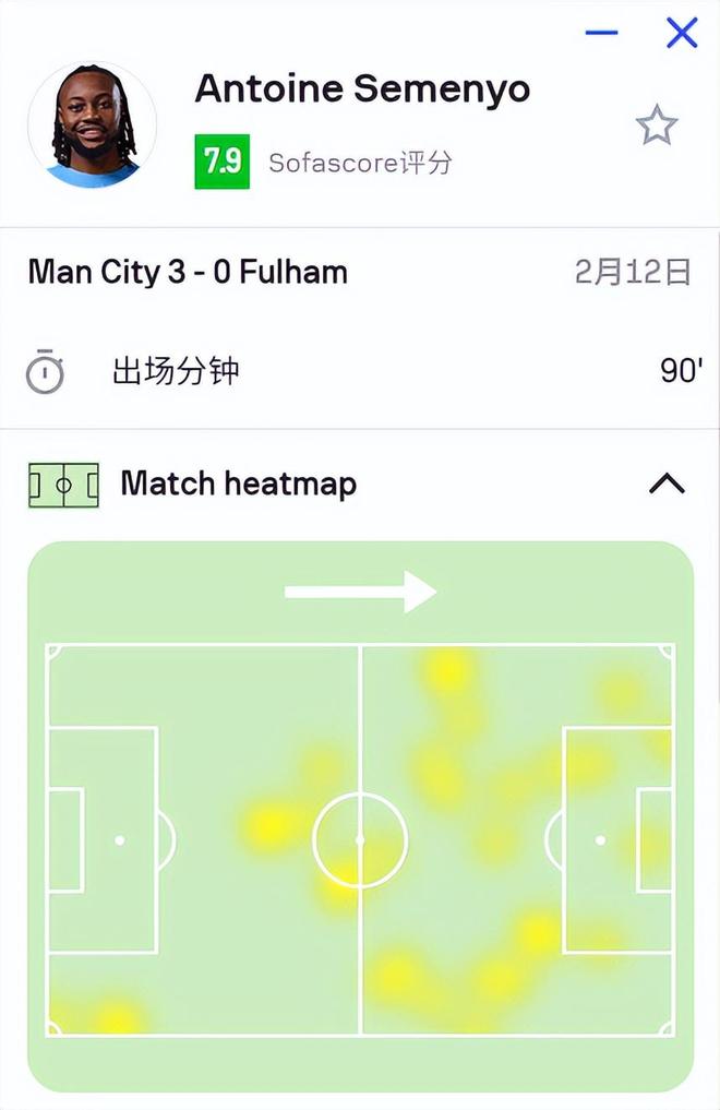 第三是深度退防,拼抢积极。 在防守端,塞梅尼奥的投入度令人印象深刻。他可以一路从对方禁区前沿回追到本方禁区,这种覆盖面积和冲刺跑频率,正是瓜迪奥拉最看重的特质。虽然防守技术并非顶级,甚至偶尔会因犯规送出点球,但这种态度和拼劲,足以赢得教练组的信任。