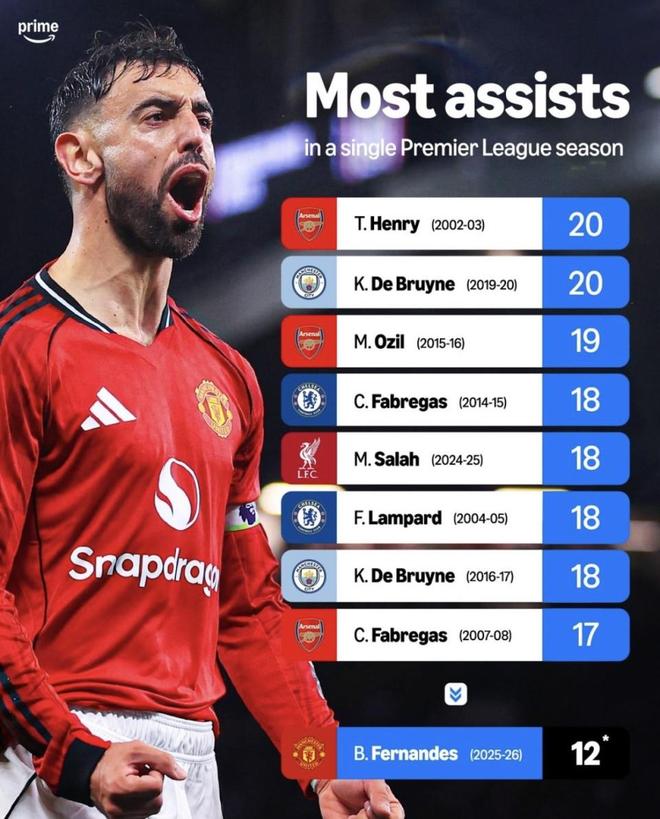 最近prime video sportuk整理了英超单赛季助攻纪录榜,亨利和德布劳内把数字顶在20次这条线上。眼下费尔南德斯本赛季已经送出12次助攻,按这份统计,曼联还剩14场联赛,他只差9次助攻就能把纪录改写。问题摆在这儿:就看曼联接下来的赛程强度和他最近这段送饼手感,费尔南德斯真能把亨利的20次助攻踩过去吗?