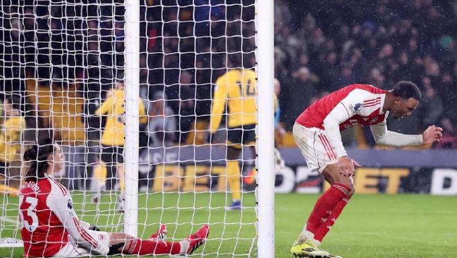 此役赛前被各方认为是稳赢局,最终被绝平。这场比赛枪手凭借萨卡的破荒进球和因卡皮耶的处子球一度取得2-0领先,却在半场过后陷入被动,被狼队凭借布埃诺的世界波和埃多齐的补时绝平逼至2-2平局。此役之前,阿森纳少赛一场领先积分榜次席的曼城4分,手握争冠主动权。阿尔特塔在核心厄德高缺阵的情况下做出战术调整,将阵型改为4-2-3-1,把此前深陷进球荒的萨卡推至前腰位置,这一变动迅速收到成效,为枪手打开了胜利之门。