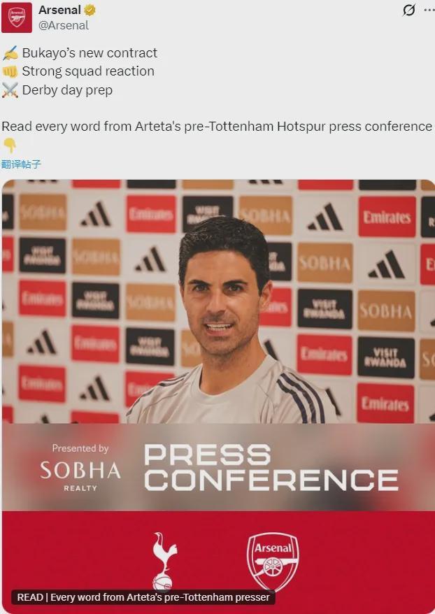 阿尔特塔出席了赛前新闻发布会,我们来看看阿森纳主帅的发言。